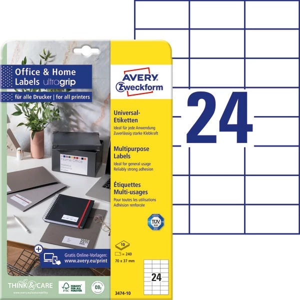 Univerzális, iratrendező-, címzés- és színes címkék 10 íves dobozokban, mely a kisebb mennyiségnek köszönhetően otthon is praktikusan használható. Tintasugaras- vagy lézernyomtató - elakadásmentes nyomtatás minden szabványos nyomtatón, tűéles képek elkenődés nélkül. FSC® tanúsítvánnyal rendelkező, felelős erdőgazdálkodásból származó alapanyagból. Könnyű és gyors címkézés az ingyenes online sablonoknak köszönhetően.