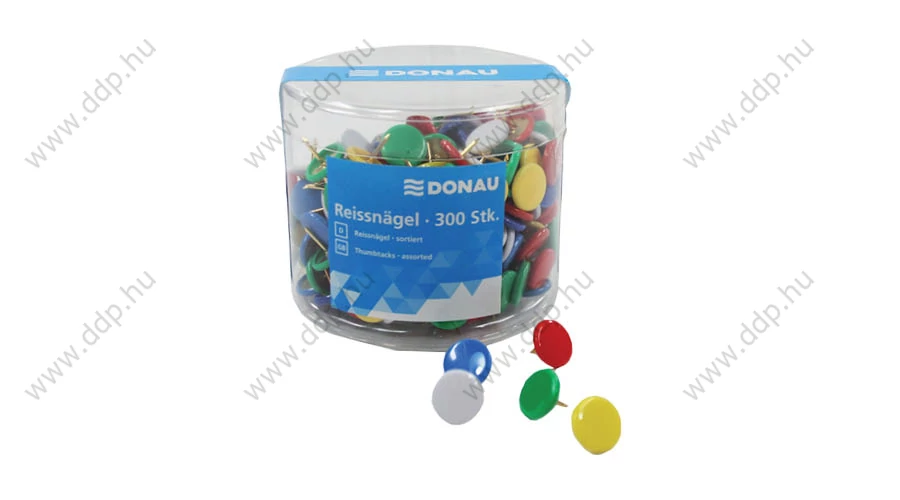 Praktikus műanyag tárolódobozba csomagolva. Rajzszegek standard minőségben, PVC kupakkal, átmérő 10 mm, hossz 7 mm