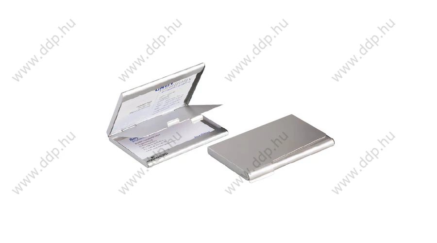 Elegáns alumínium névjegykártyatartó, 2 részes. Ideális a vevői és saját névjegykártyák külön történő tárolására. Mindegyik részben 10 névjegykártya tárolható. Maximális méret: 55 x 90 mm. Biztonságos tárolást, és könnyű elérhetőséget biztosít minden névjegy számára.