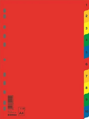 A/4-es méretű regiszter a lefűzött dokumentumok praktikusrendszerezéséhez. Tartós PP anyag. 11 lefűzőlyuk.